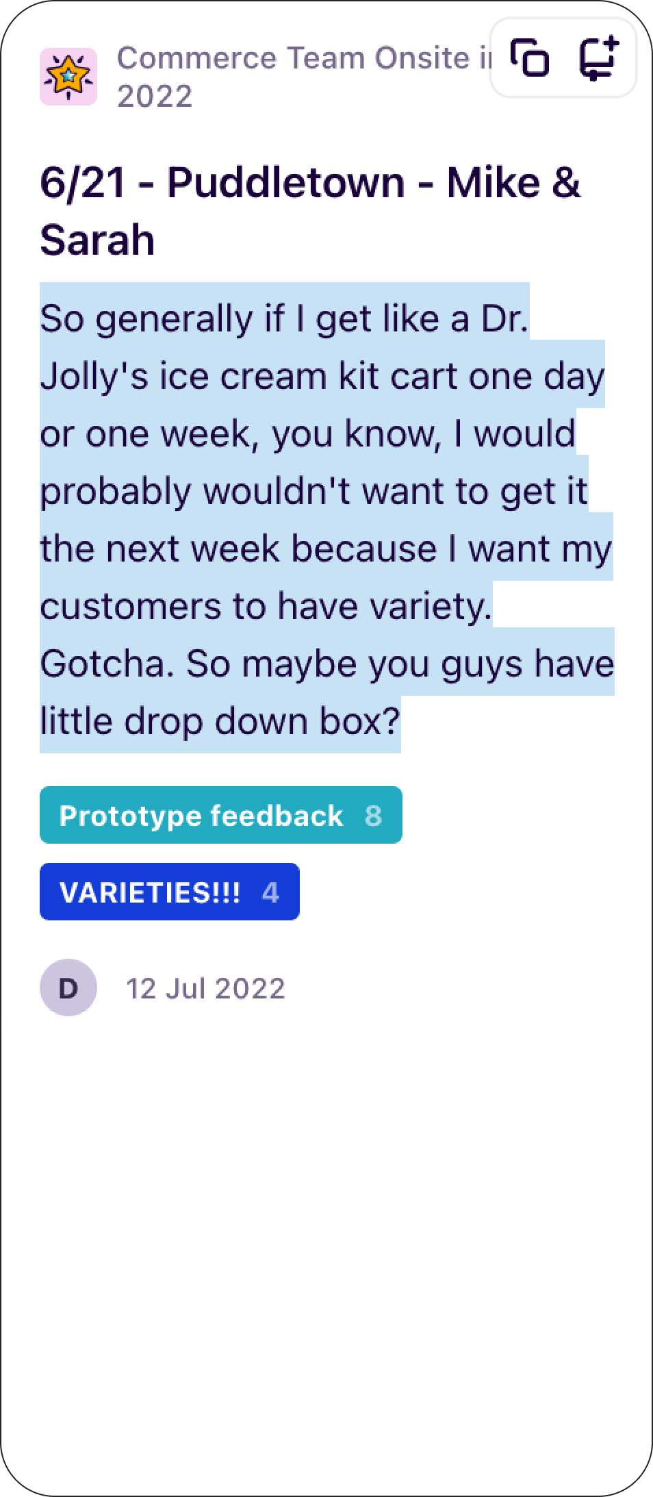 We had 8 customer meetings in total and a handful of impromptu meetings to try and get as much feedback as possible