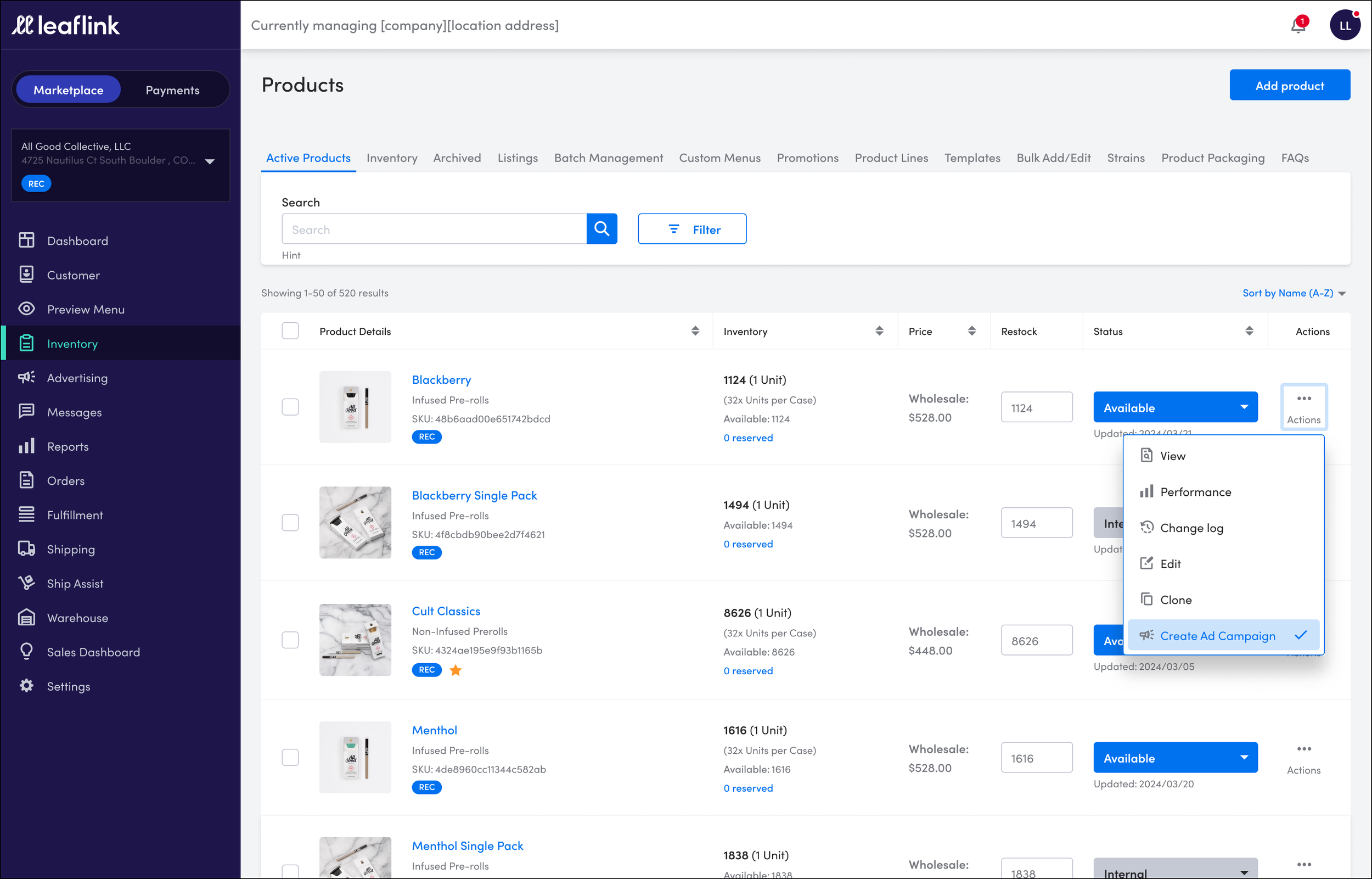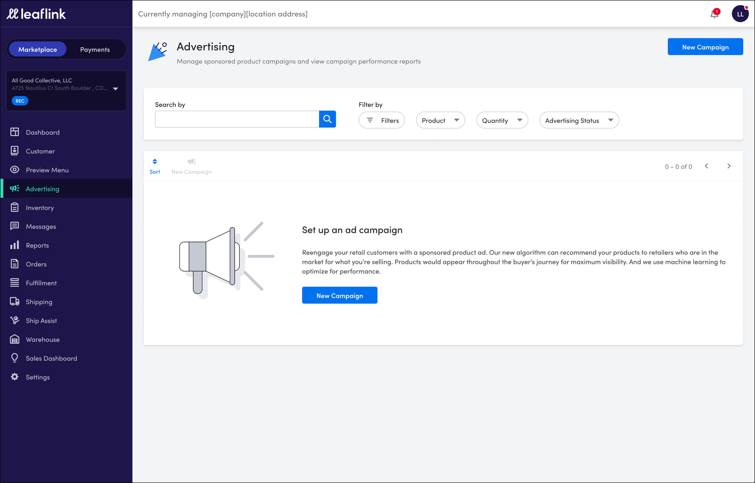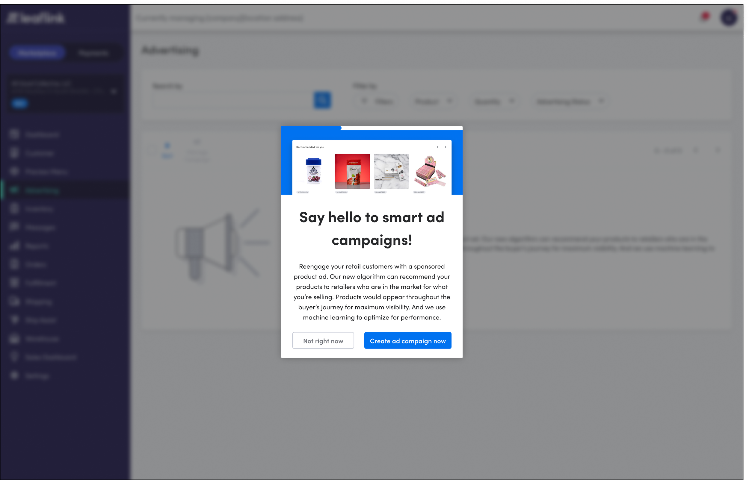 At the time, LeafLink had some basic advertising functionality, but it was not well-organized, and brands lacked tools to manage their campaigns autonomously.